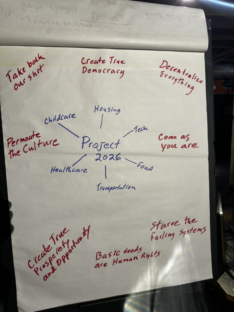 Project 2026 is a direct response to Project 2025**, a republican initiative to take over the U.S. Government. Project 2026, initiated by The Fledge in January 2026, strives to give a road map, an action plan, to the community on how we can respond to the authoritarian tactics being carried out by the current administration. Project 2026 is a reflection of the work [the Fledge](https://thefledge.com) has been doing for the past 11 years. It starts with a simple concept that we can all be wealthy if we change our mindset a bit and do a lot of work to tae control of building our future. We must first start with the definition of Wealth. We define it as well-being and prosperity. We look at basic human rights as not "entitlements" but rather the responsibilities of the systems we live in. It is the responsibility of these systems to ensure that we all have the opportunity to thrive, and we the system fails us, there should be safety nets to catch us and help us heal as necessary. To this end we see basic needs as human rights. We use the ALICE Threshold as our guideline for this. ALICE stands for Asset Limited Income Constrained and Employed. The threshold represents the minimum amount a person or couple of family would need to earn to afford all of their basic needs. ALICE identifies these basic needs as Housing, Healthcare, Childcare, Food, Transportation and Technology. Our goal is to turn all of these in to micro-enterprises with Cooperative Principles.